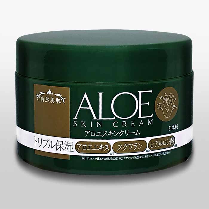 みずみずしい保湿成分のアロエエキスにスクワランとヒアルロン酸Naの二つの保湿成分を配合、トリプル保湿で進化したスキンクリーム。なめらかに伸びて、適度な水分と油分を補給、顔はもちろん、手足や全身に幅広く使用できます。