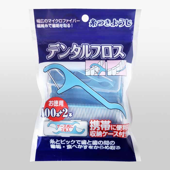 幅広のマイクロファイバー繊維糸で歯垢をからめ取り、フロスの届きにくい奥歯の裏側や歯と歯の間の取りにくい食べカスはピックで除去。携帯に便利な収納ケース付き。お徳用100+2本。